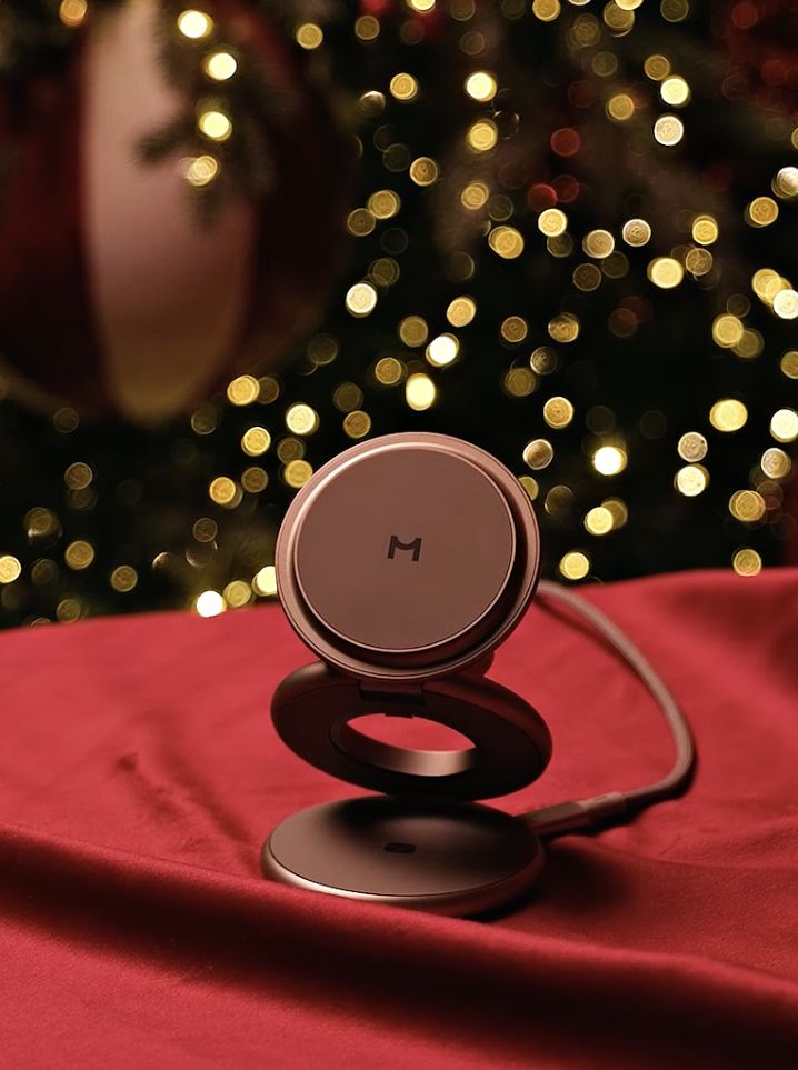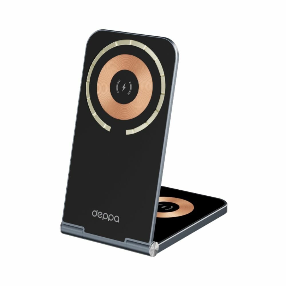 Ультратонкая беспроводная зарядная станция, созданная для тех, кто ценит минимализм и необычный дизайн. Корпус выполнен из металла с фронтальной панелью из закалённого стекла. Складная конструкция и компактные размеры позволяют легко брать гаджет с собой — она без труда помещается в сумку или рюкзак.