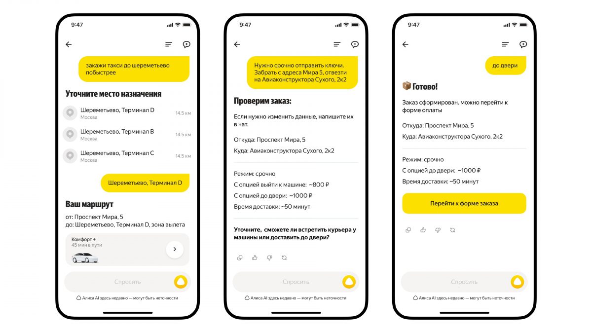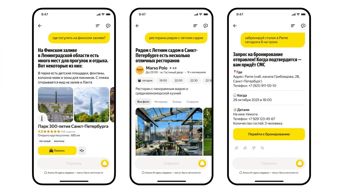 С помощью Алисы AI можно будет в одном чате заказать такси, выбрать ресторан и забронировать там столик, оформить доставку или собрать корзину продуктов. Это станет возможным благодаря интеграции с ИИ-агентами сервисов Яндекс Go — Такси, Еды, Лавки и Доставки.