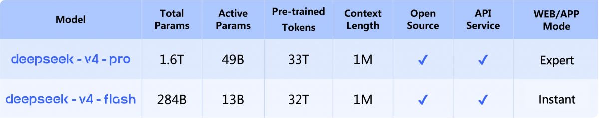 - DeepSeek-V4-Pro — 1,6 трлн параметров (49 млрд активных). Производительность, сопоставимая с лучшими в мире моделями с закрытым исходным кодом.