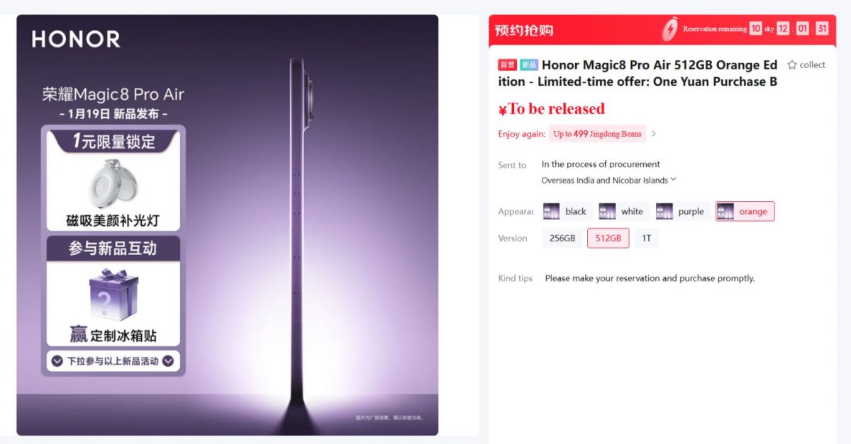 HONOR официально объявила дату презентации своего нового ультратонкого флагманского смартфона Magic 8 Pro Air. Конкурент iPhone Air будет представлен уже 19 января. Сбор предзаказов начался.