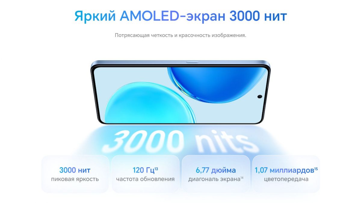 HONOR X8d оснащен 6,77-дюймовым AMOLED-экраном с частотой обновления 120 Гц, пиковой яркостью до 3000 нит в HDR и шестью технологиями защиты зрения. Основная камера на 108 Мп поддерживает трехкратный зум и набор AI-инструментов для обработки фото.