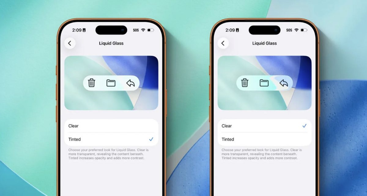 Главное изменение — переключение Liquid Glass, позволяющий выбирать между прозрачным и более тонированным оформлением интерфейса.