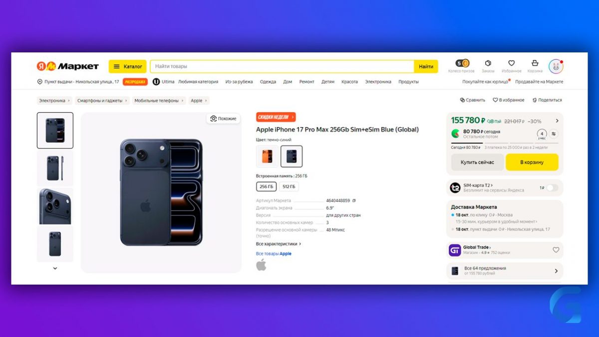 - iPhone 17 Pro Max (256 ГБ) — от 156 тысяч рублей.