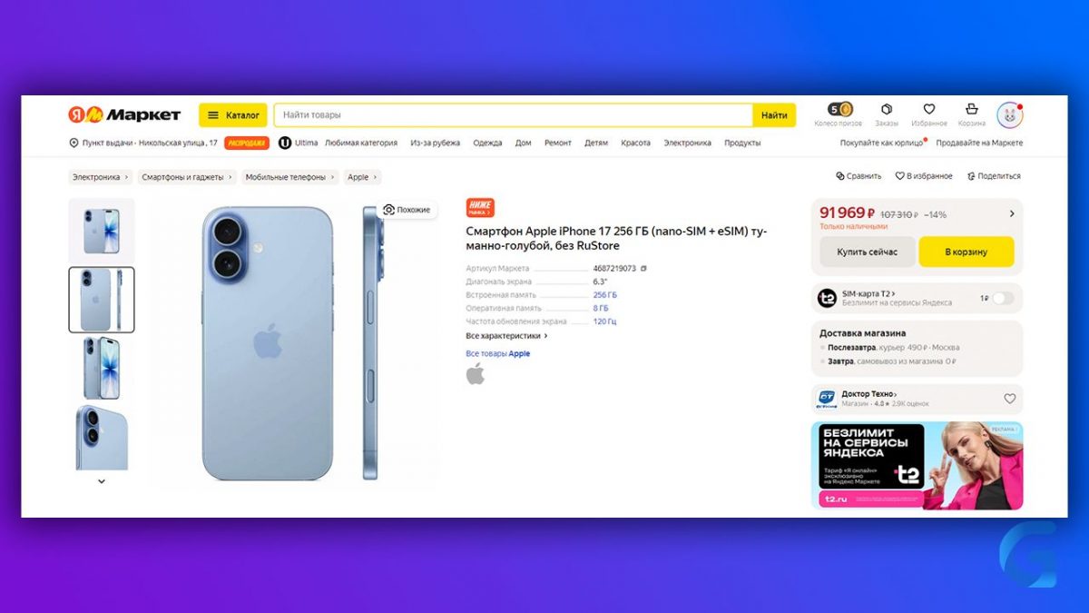 - iPhone 17 (256 ГБ) — от 92 тысяч рублей;