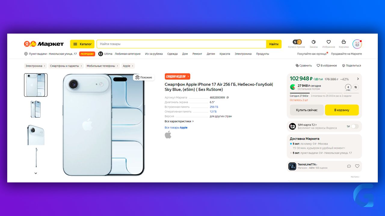 Что касается iPhone Air (256 ГБ), то в крупных сетях он стоит 144 990 рублей, а на маркетплейсах — почти на 30% дешевле, от 103 тысяч рублей.