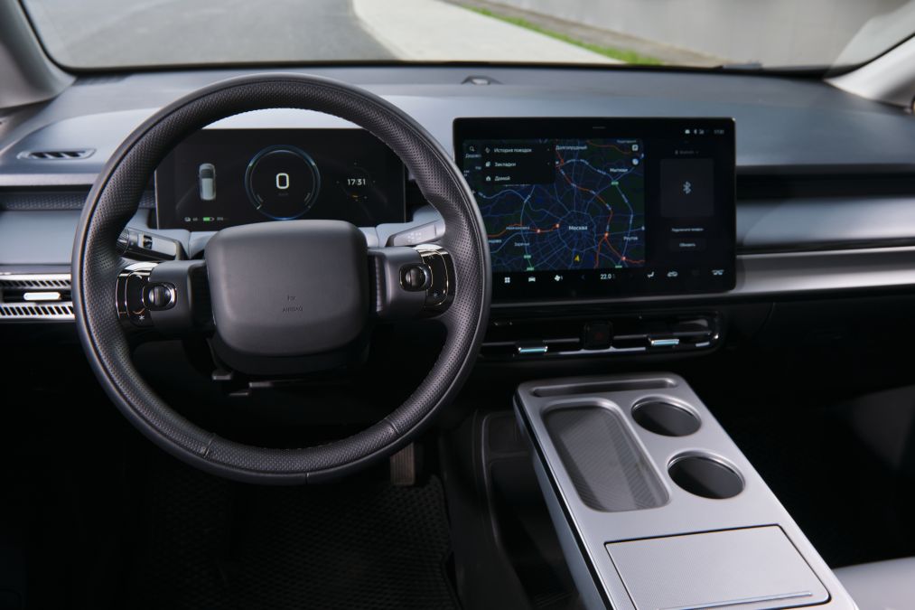 Встроенный ИИ-ассистент Алиса позволяет управлять электромобилем с помощью голоса. Например, можно открыть окно, включить кондиционер или задать маршрут. В салоне установлен крупный мультимедийный экран и аудиосистема, которые позволяют пользоваться Навигатором, Музыкой и Книгами.