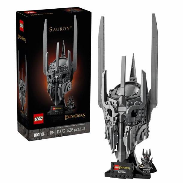 Набор включает 538 деталей, из которых можно собрать шлем главного антагониста, а также минифигурку Саурона с Кольцом Всевластия.