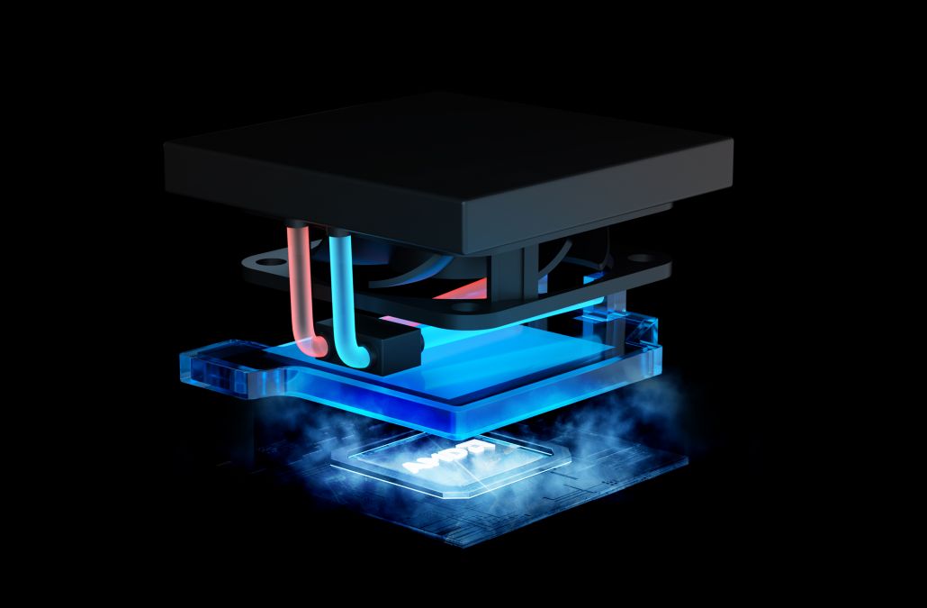 Система охлаждения сочетает жидкостный замкнутый контур и систему вентиляции со сменными фильтрами. Всё это обеспечивает стабильную рабочую температуру в пределах 71-76°C, а при полной нагрузке система сохраняет уровень шума ≤ 49,8 дБ.
