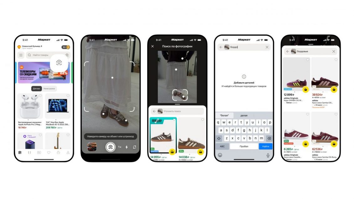 Пользователи Яндекс Маркета теперь могут искать товары по фото и сразу уточнять желаемые характеристики: цвет, размер, стиль и прочее. Для этого нужно нажать на значок камеры в поиске, загрузить изображение и написать в поле «Уточнить поиск» необходимые детали (например, аналогичное платье, но синего цвета или с длинными рукавами).
