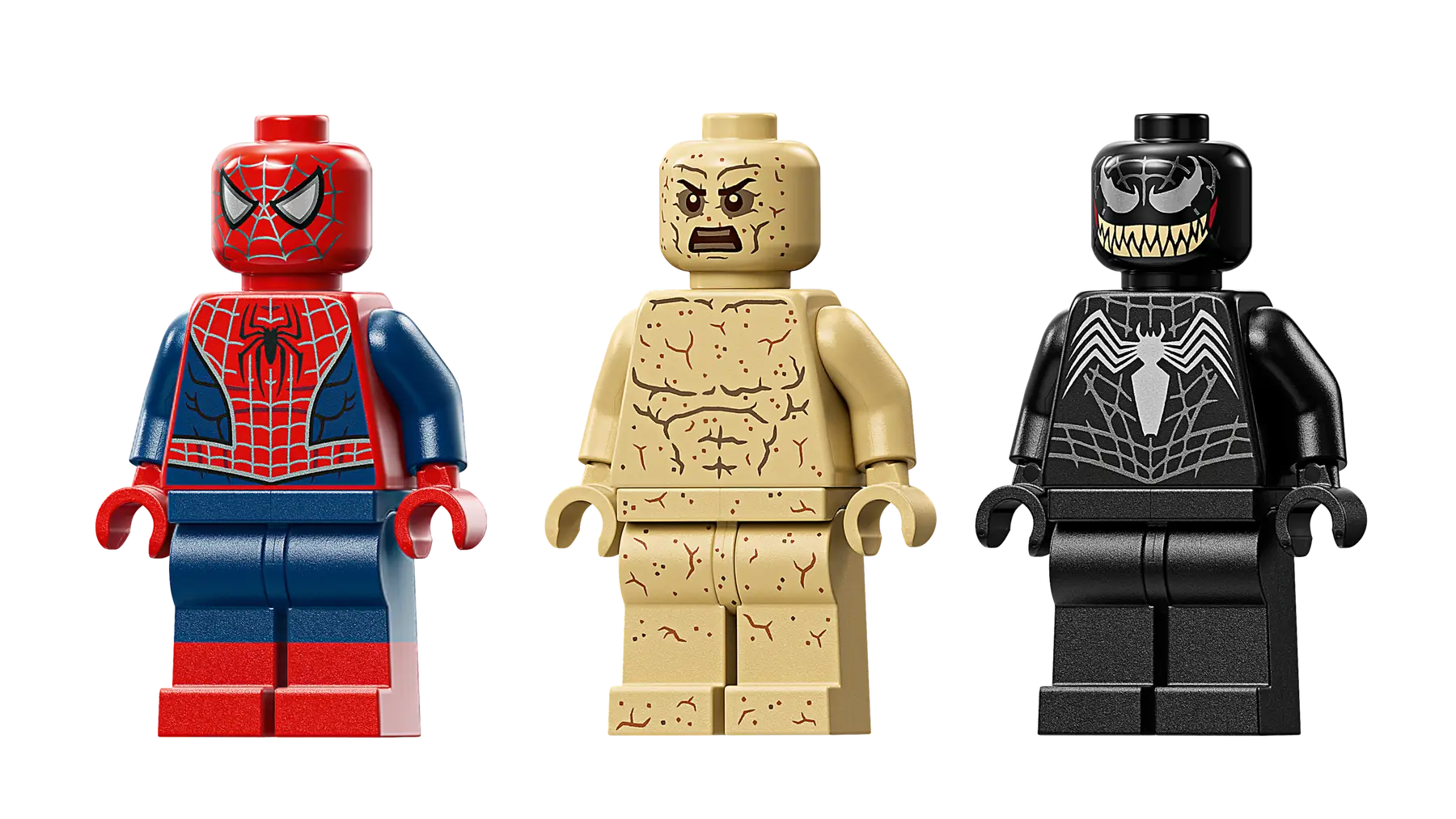 Набор состоит из 201 детали и включает в себя три минифигурки — Человек-паук, Веном и Песочный Человек. Он входит в серию LEGO | Marvel Epic Moment, посвященную ключевым сценам из фильмов Marvel.