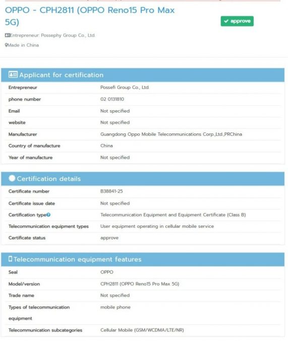 OPPO подала на регистрацию в базы международных регуляторов сразу несколько смартфонов новой серии Reno 15, в том числе Reno 15 Pro Max.