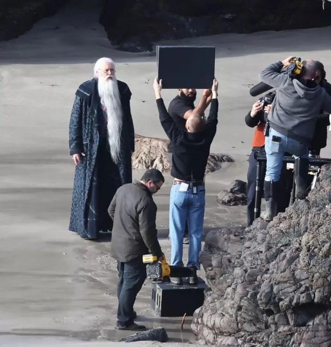 В сети появились новые кадры со съемочной площадки сериала по «Гарри Поттеру». На них впервые запечатлен Джон Литгоу в роли Альбуса Дамблдора с длинной белой бородой, в очках и черной мантии.