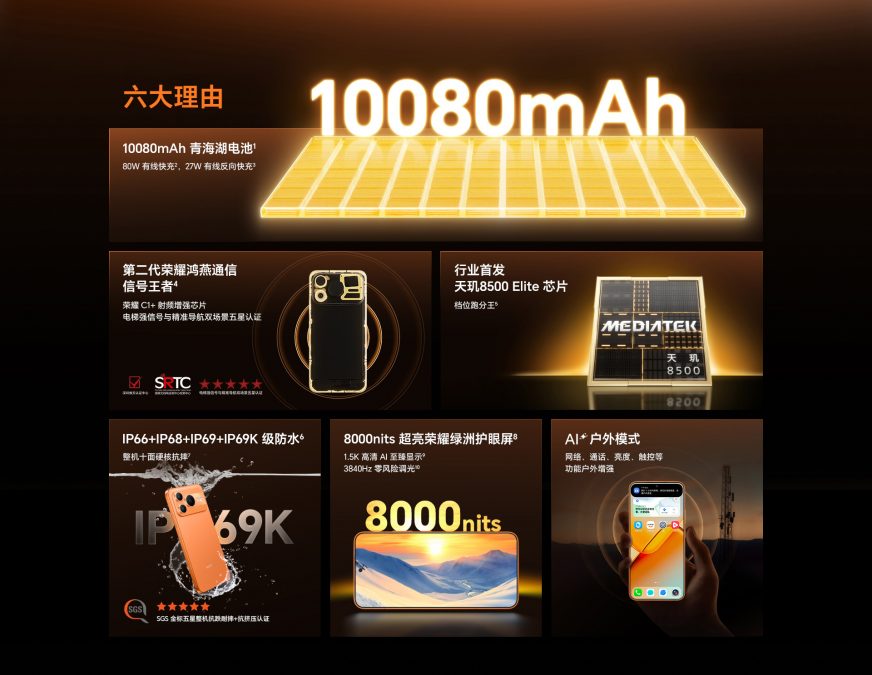 Корпус HONOR Power 2 выполнен из металла и защищен по стандарту IP69K. Смартфон доступен в трех цветах: белом, черном и оранжевом. Ценник стартует от 2699 юаней (~31 300 рублей).