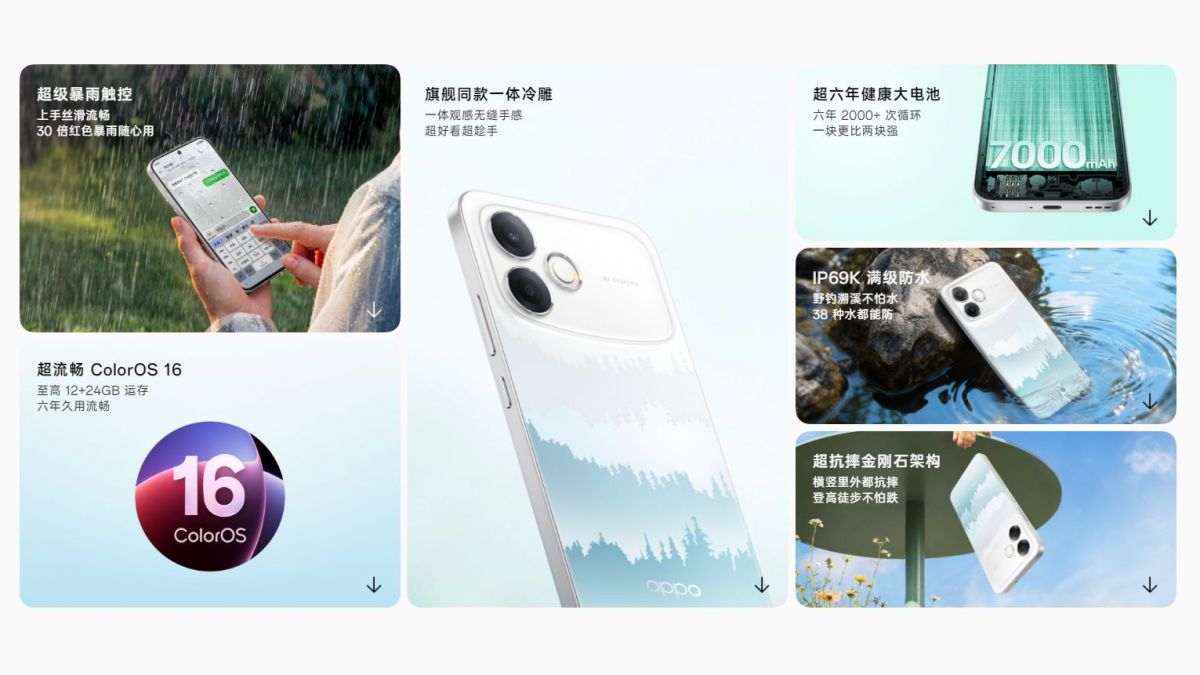Смартфон оснащен 6,57-дюймовым AMOLED-дисплеем с частотой обновления 120 Гц и новым процессором MediaTek Dimensity 6360-Max. OPPO A6s Pro получил аккумулятор емкостью 7000 мАч с поддержкой быстрой зарядки 80 Вт, до 12 ГБ оперативной памяти, основную камеру на 50 Мп с автофокусом и фронтальную камеру на 16 Мп. Есть Wi-Fi 5, Bluetooth 5.4, 5G, NFC и подэкранный оптический сканер отпечатков пальцев.