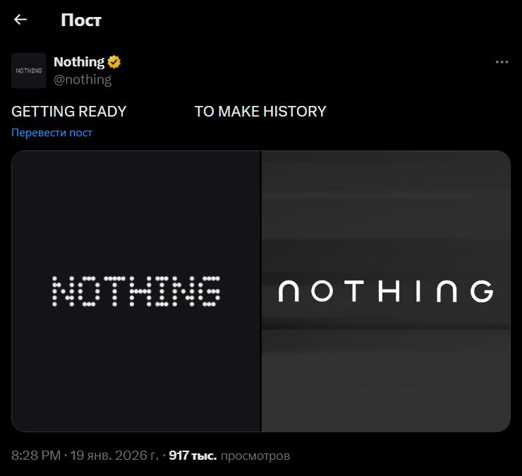 Предполагается, что публикация может быть намёком на возможный редизайн бренда Nothing. Больше года назад компания уже отказалась от точечного шрифта в ОС.