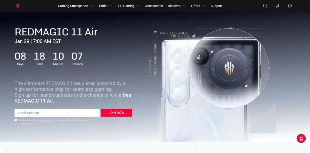 Игровой смартфон RedMagic 11 Air, который 20 января дебютировал в Китае, выйдет на глобальный рынок уже 29 января. Соответствующий баннер появился на официальном сайте и в соцсетях бренда.