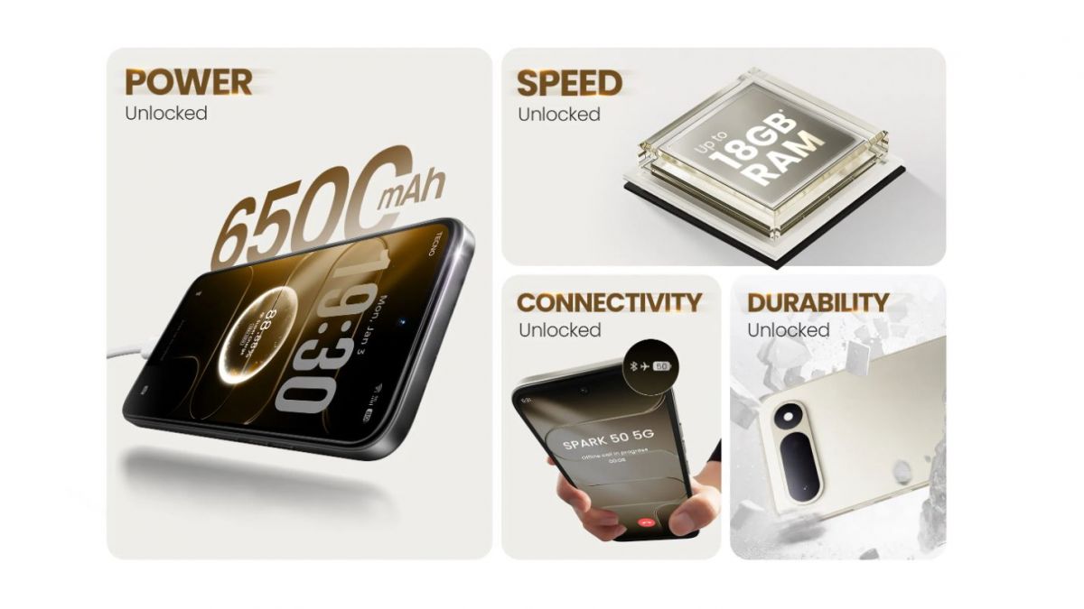 TECNO анонсировала на индийском рынке новый бюджетный смартфон Spark 50 5G, выполненный в стиле iPhone Air и Google Pixel.