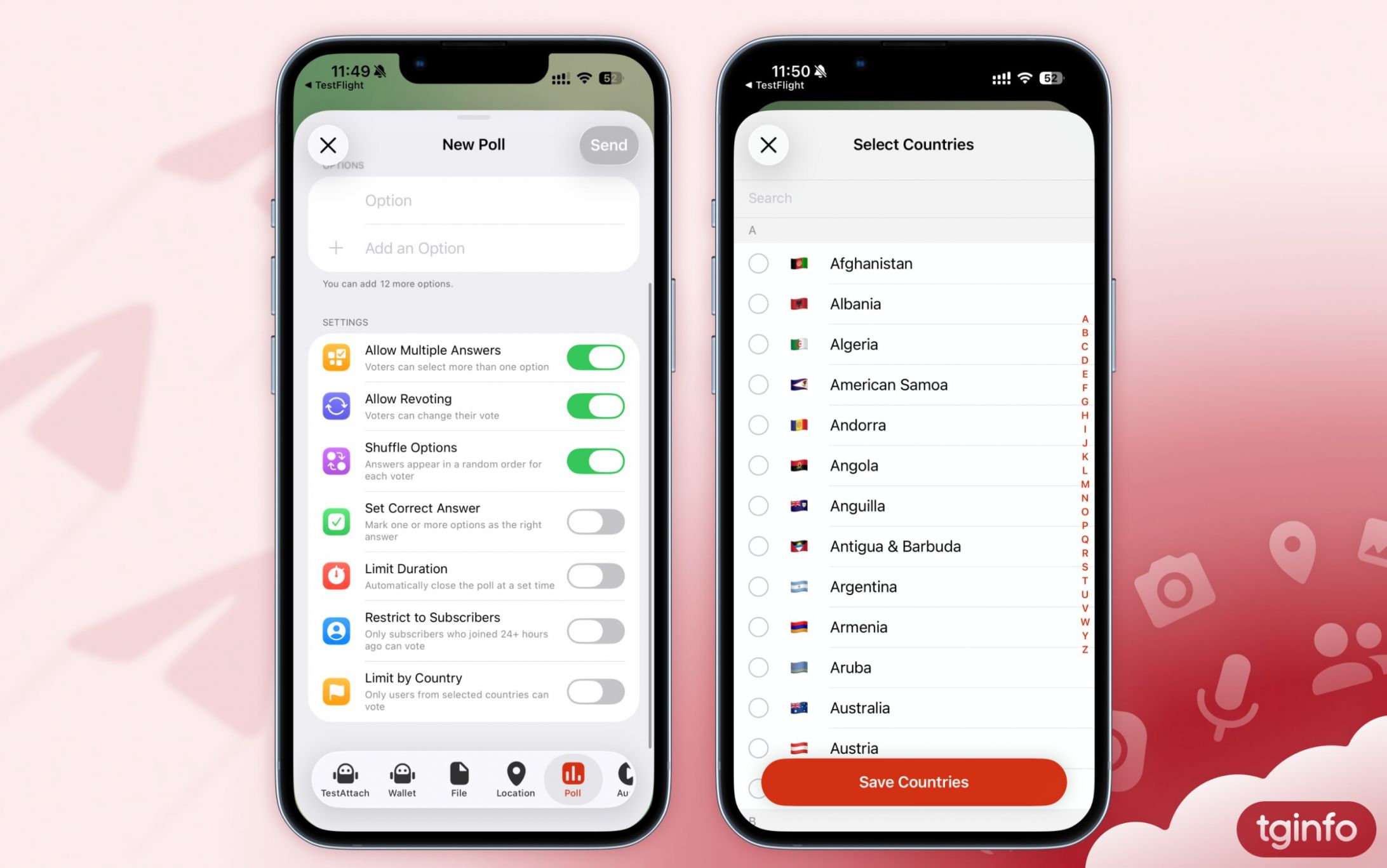 Кроме того, появятся географические ограничения. Опрос можно будет сделать доступным только для пользователей из выбранной страны или нескольких стран.
