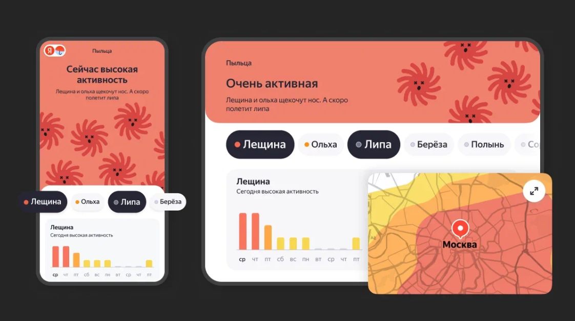 Всего «Яндекс Погода» отслеживает цветение 8 растений. Помимо лещины и липы, это берёза, ольха, сорняки, полынь, злаки и амброзия. Такой набор позволяет охватить наиболее распространённые источники аллергии в разных регионах страны.