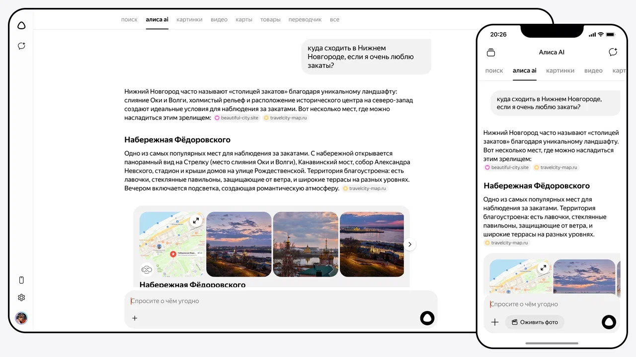 Чтобы перейти в режим общения с ИИ, достаточно открыть вкладку «Алиса AI» под поисковой строкой. Сам диалог работает на флагманской языковой модели Яндекса Alice AI LLM. В компании отмечают, что она способна отвечать с учётом локального контекста и особенностей российской аудитории.