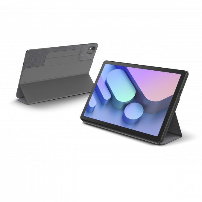 Планшет оснащён основной камерой на 13 Мп и фронтальной 5 Мп, портом USB-C, четырьмя динамиками, слотом для microSD, а также поддержкой стилуса и клавиатуры. Корпус выполнен из алюминиевого сплава.
