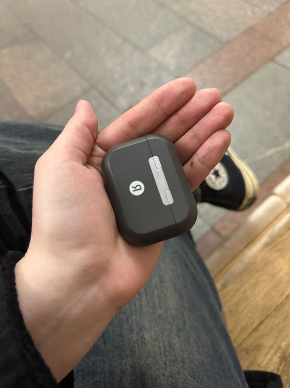 Судя по снимкам, это «Яндекс Дропс» — TWS-наушники с ИИ-ассистентом, которые компания анонсировала на YaC 2025, но в продажу пока не выпустила.