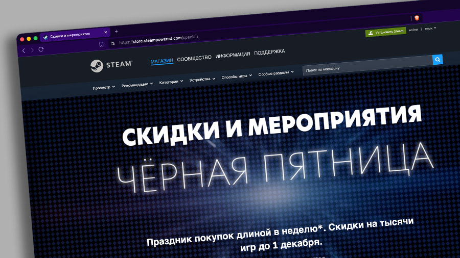 Valve открыла традиционную ноябрьскую распродажу: в Steam появились тысячи игр по сниженной цене, а сами скидки продлятся до 1 декабря включительно. Период короткий, почти неделя, но выбор огромный.