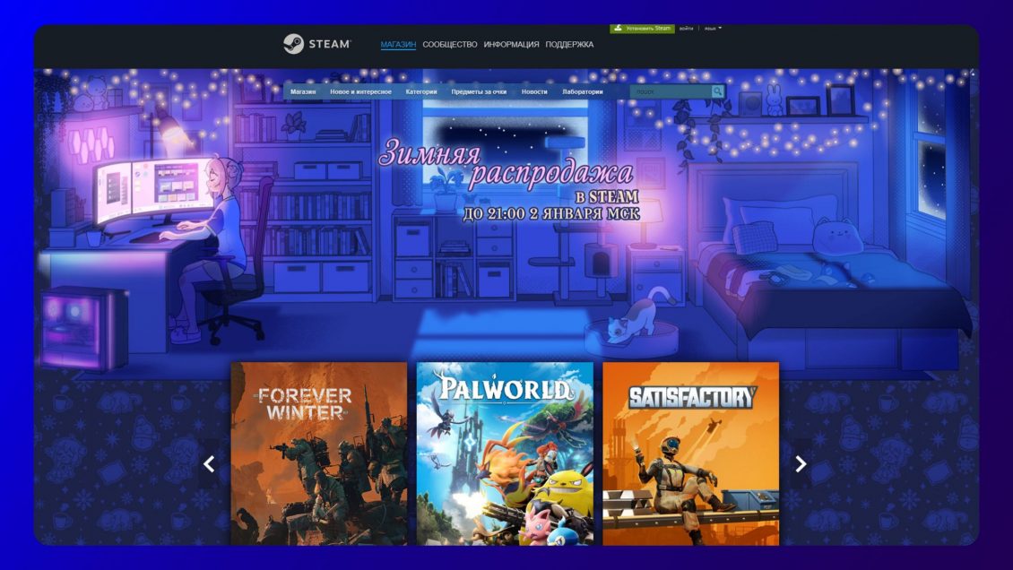 Valve запустила в Steam большую зимнюю распродажу, которая продлится с 19 декабря по 2 января 2025 года.