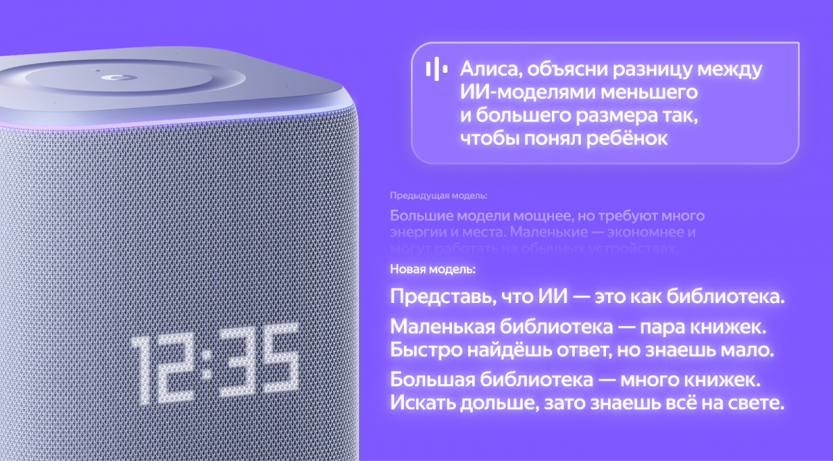 Пользователи стали на 9,9% реже переспрашивать Алису, а сами ответы стали более подробными — их средняя длина выросла примерно на 37%. Кроме того, ассистент теперь лучше объясняет сложные темы и может подбирать более понятные аналогии.
