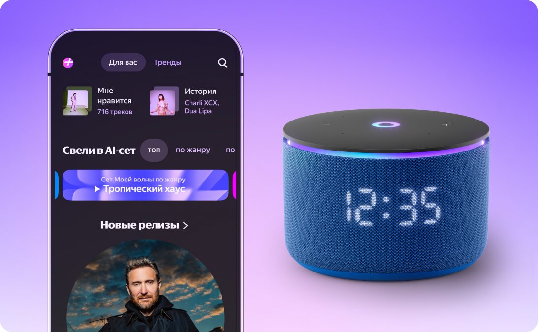 На Станциях и ТВ Станциях стали доступны ИИ-сеты Яндекс Музыки. Нейросеть автоматически собирает и сводит треки в непрерывный музыкальный поток, подстраиваясь под жанр или ситуацию.