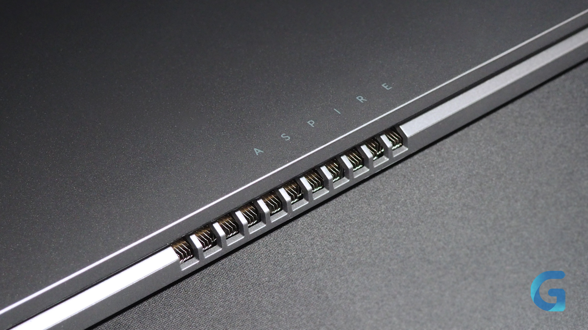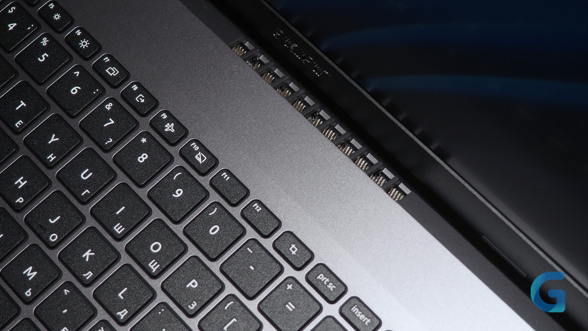 Что касается системы охлаждения, то горячий воздух выводится из ноутбука назад, а само отверстие не перекрывается петлей крышки. При высокой нагрузке именно правая верхняя часть нагревается чуть сильнее остального корпуса.