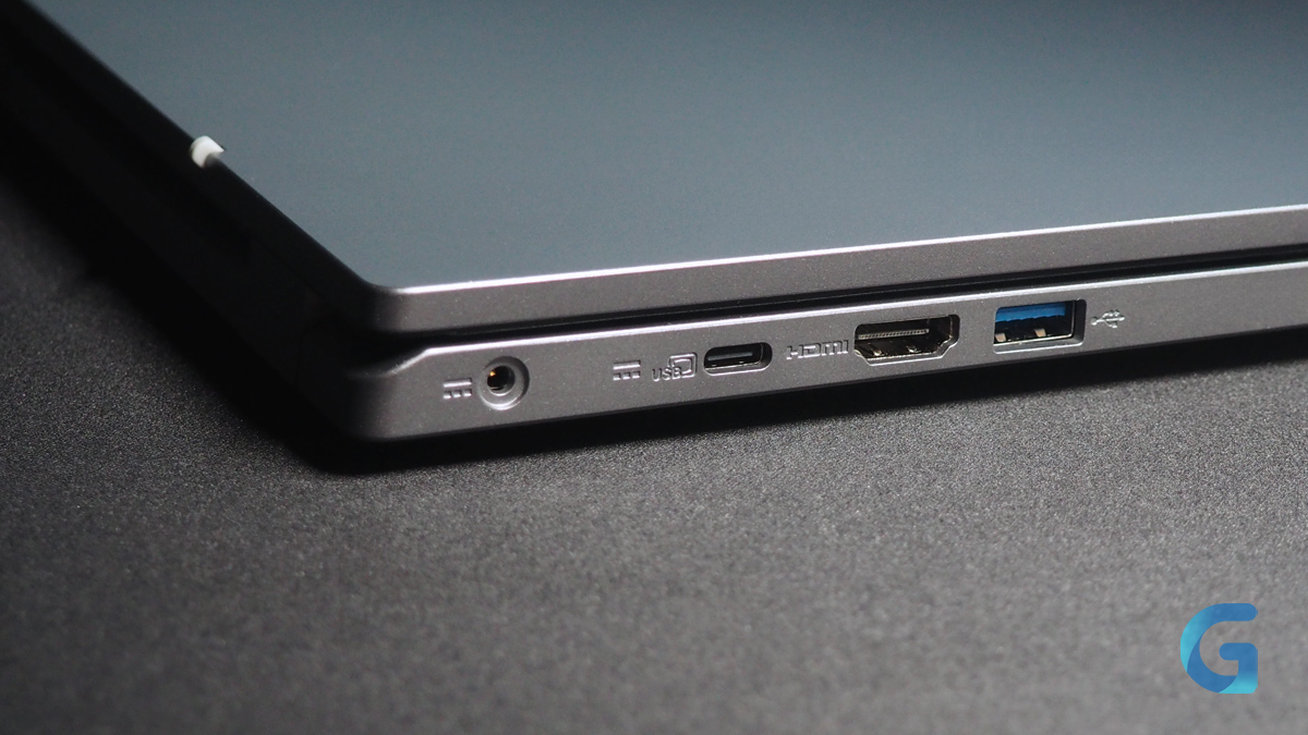 Пройдемся по портам. Слева находятся разъем питания, USB Type-C (поддерживает зарядку и вывод изображения), HDMI 2.1 и USB-A. Справа — Kensington Lock, еще один USB-A и разъем под наушники 3,5 мм. Отдельно стоит обратить внимание, что заряжать Aspire 3 17 можно не только комплектным адаптером с круглым штекером, но и сторонней зарядкой с USB-C. Как по мне, это огромный плюс.