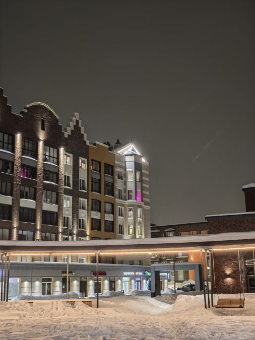 Что это означает на практике? Ночные кадры детализированные, объёмные, практически без шумов и «выкрученной» насыщенности. В большей степени это заслуга алгоритмов, однако «агрессивной» нейрообработки здесь нет. По крайней мере, если речь идёт о небольшом приближении.