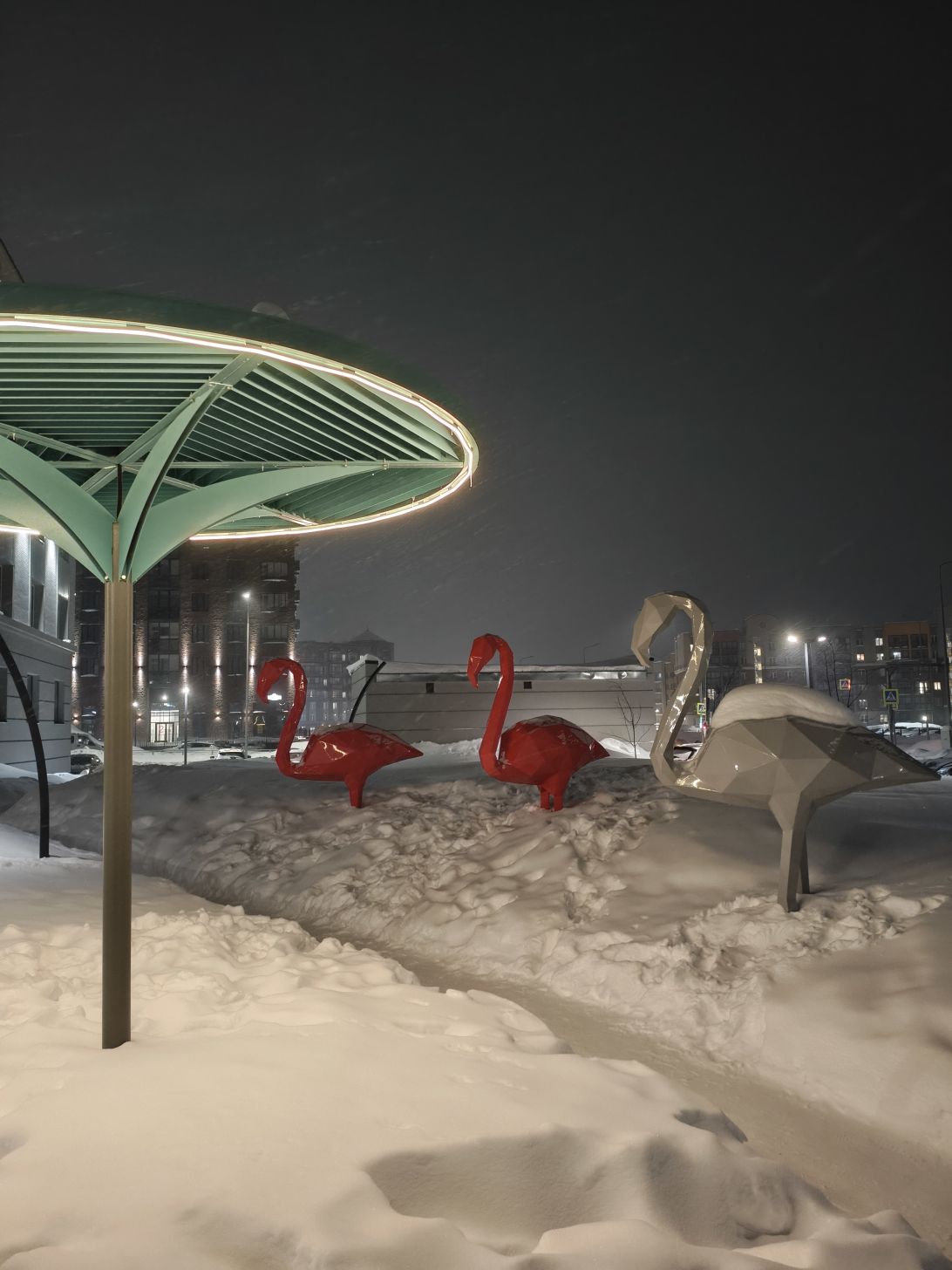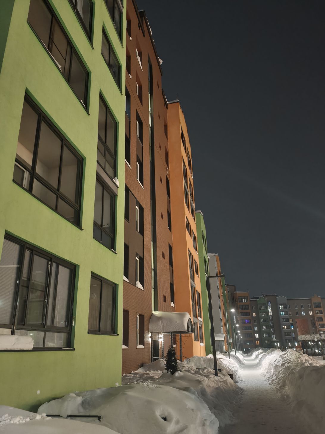 В тёмное время суток основная камера показывает себя достойно для своего класса. Детали частично сохраняются, шумов не слишком много. Ночной режим дополнительно вытягивает тени и делает сцену светлее.
