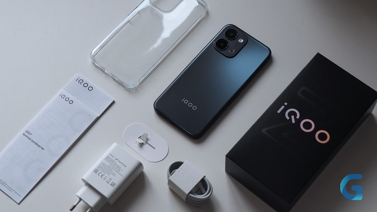 Коробка у iQOO Z11x лаконичная, без лишнего пафоса. Внутри лежит сам смартфон, зарядный блок на 44 Вт, кабель USB-C, защитный чехол (мягкий, силиконовый, но на первое время хватит), скрепка для лотка SIM-карты и стандартный набор документации. На экране уже наклеена заводская защитная плёнка. Приятно, что производитель не жадничает и кладёт в коробку всё необходимое сразу.