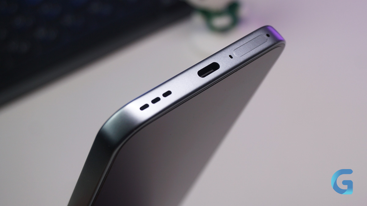 На нижней грани устройства расположился комбинированный лоток для SIM-карт и карты памяти, микрофон, разъём USB-C и динамик. Основной динамик играет громче, верхний чуть тише, но вместе они дают чистый и довольно насыщенный звук. На максимальной громкости хрипов нет
