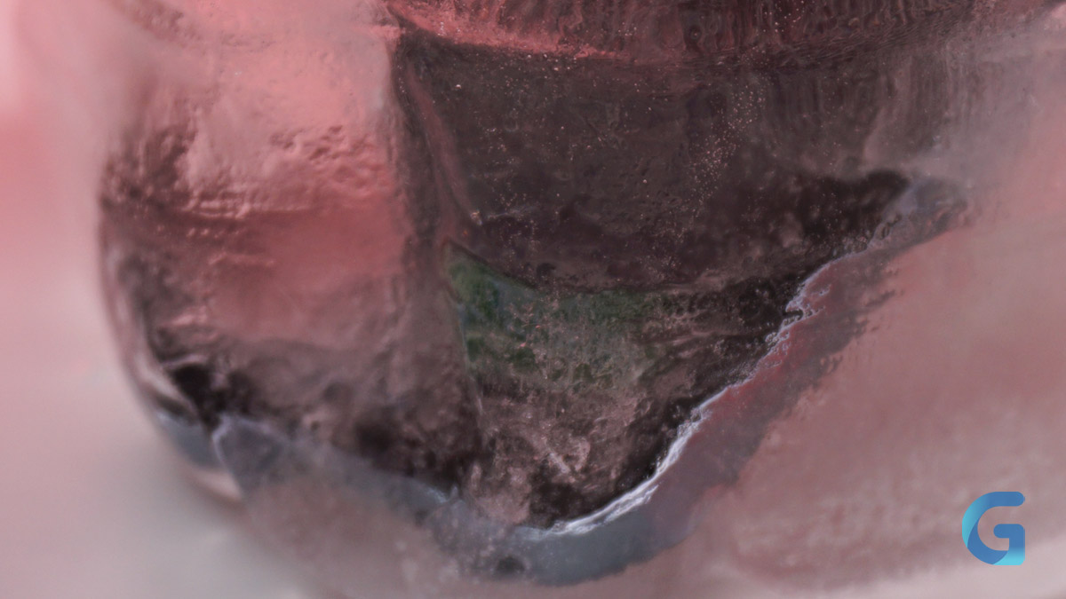 Лёд — плотная среда, ударная волна частично проходит сквозь него, поэтому в теории подобная нагрузка способна навредить смартфону. Несмотря на это, я раскалывал капсулу, постепенно раскрывая корпус.