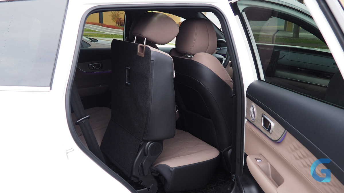 Багажник у TENET T8 формально небольшой — всего 193 литра, но из-за семиместной компоновки. На практике третий ряд почти бесполезен: чтобы там хоть как-то разместиться, приходится сдвигать второй вперёд, и места становится мало всем. Посадка на третий ряд только с правой стороны.