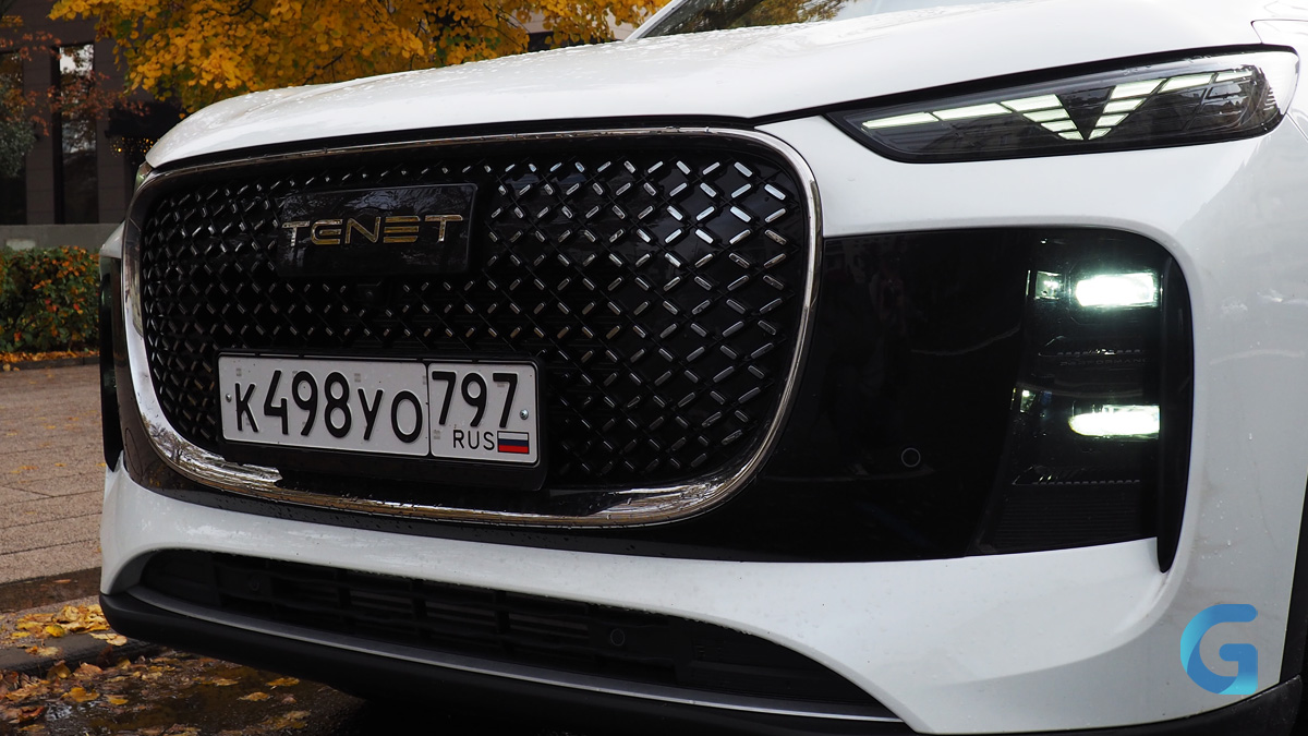 Передняя оптика у TENET T8 выполнена в двухуровневом формате: сверху — ходовые огни, снизу — основные фары. Такое расположение сейчас встречается всё чаще, и у него есть смысл.