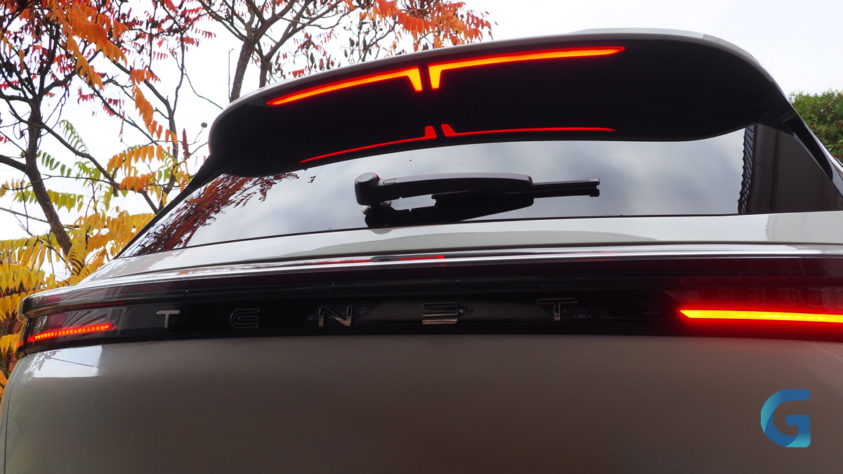 Задняя часть у TENET T8 выглядит сдержанно и аккуратно. Фонари объединены горизонтальной полосой, а над стеклом проходит тонкий Т-образный стоп-сигнал.