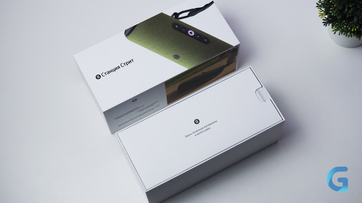 Станция Стрит встречает не как бюджетная Bluetooth-бочка, а как вещь посерьёзнее. Белая матовая коробка, аккуратная полиграфия, лаконичная надпись «Станция Стрит». Никаких «HI-FI SUPER BASS» и прочей подростковой эстетики. Всё сдержанно и чисто.